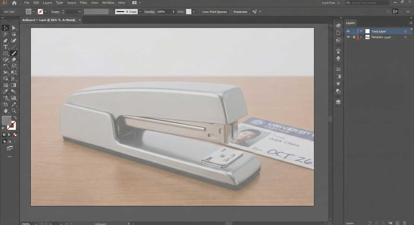 - Texture/details: Thin stroke (0.5pt) Professor's Note: "If you use Image Trace or Text-to-Vector, I will know immediately. AI creates hundreds of anchor points. I am grading you on Economy of Points. I want to see the fewest points possible to create a smooth curve."